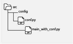 Peut-on faire autrement qu’avec la ligne de commande ? Oui, en utilisant des fichiers de configuration. Les paramètres sont alors stockés dans un fichier puis lus par l’application. Ci-dessous, un exemple réalisé avec un dictionnaire Python créé dans un fichier conf.py, puis importé et utilisé dans le main :